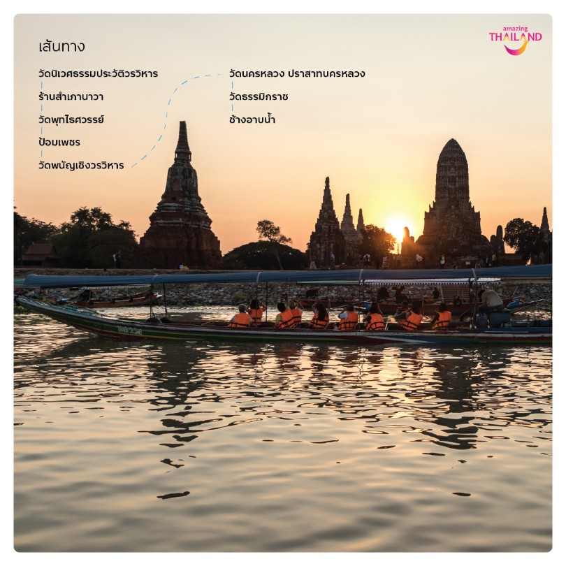 ทริปนี้จะเป็นการล่องเรือไปตามแม่น้ำเจ้าพระยา เพื่อเทียบท่าแวะชมความงดงามของวัดวาอาราม และสถานที่สำคัญ เป็นกิจกรรม Must Try เที่ยวอยุธยาในประสบการณ์ใหม่