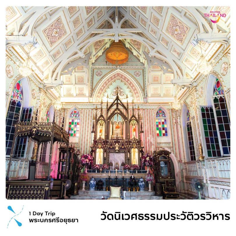 เริ่มจากที่วัดนิเวศธรรมประวัติวรวิหาร เพื่อสัมผัสเสน่ห์ Must Seek ของวัดไทยสไตล์ฝรั่ง และชมพิพิธภัณฑ์วัดนิเวศธรรมประวัติวรวิหาร จัดแสดงเครื่องอัฐบริขารที่ใช้สำหรับพระภิกษุสงฆ์ ระดับพระบรมวงศานุวงศ์ และเครื่องใช้ต่าง