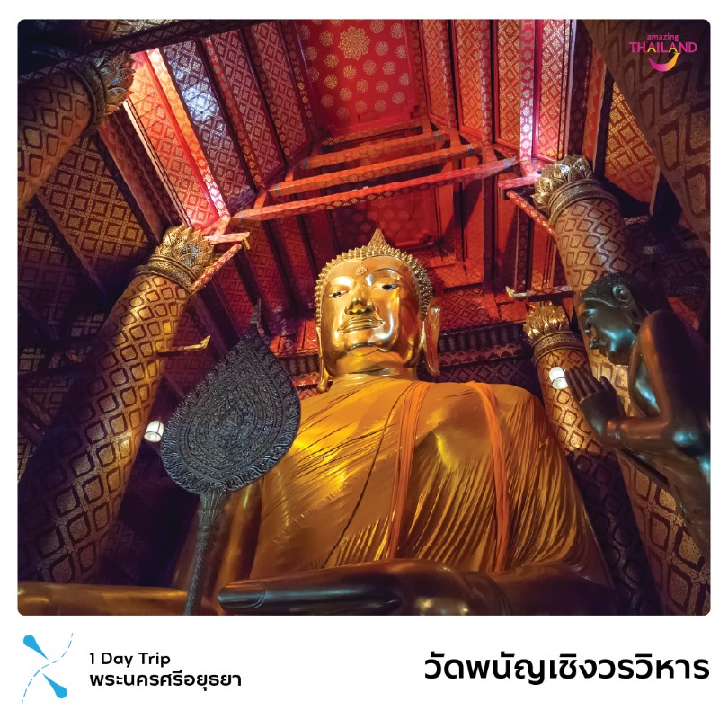 ก่อนจะไปสักการะหลวงพ่อโตตามวิถีคนพื้นถิ่นที่วัดพนัญเชิงวรวิหาร หรือพระพุทธไตรรัตนนายก ชมความ Must Seek ของพระพุทธรูปศิลปะอู่ทองตอนปลาย ที่ชาวอยุธยานับถือกันว่าเป็นพระโบราณคู่บ้านคู่เมืองกรุงศรีอยุธยามาแต่แรกสร้างกรุง
