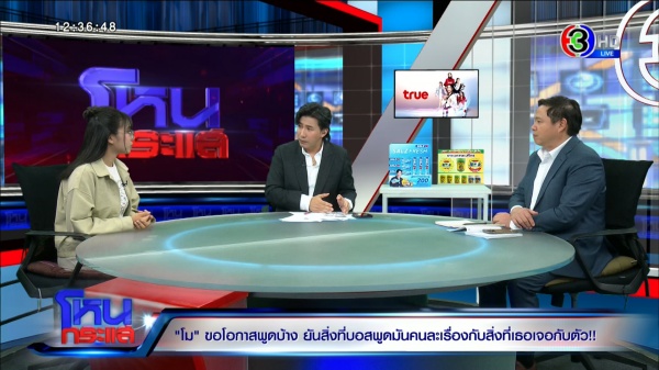 รายการ โหนกระแส วันที่ 6 มี.ค.68 ดำเนินรายการแทน “หนุ่ม กรรชัย กำเนิดพลอย” ผลิตในนามบริษัท ดีคืนดีวัน จำกัด ออกอากาศทุกวันจันทร์-ศุกร์ เวลา 12.35 น. ทางช่อง 3 กดหมายเลข 33 สัมภาษณ์ โม อดีตแฟนบอส มาพร้อม “ทนายแก้ว ดร.มนต์ชัย จงไกรรัตนกุล”