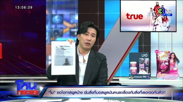 โม : หนูจะพูดเรื่องความสัมพันธ์เฉย ๆ บอสพูดอะไรบิดเบือน รู้ว่ามีสัญญา ทราบว่ามีการประกาศฟ้องค่ะ