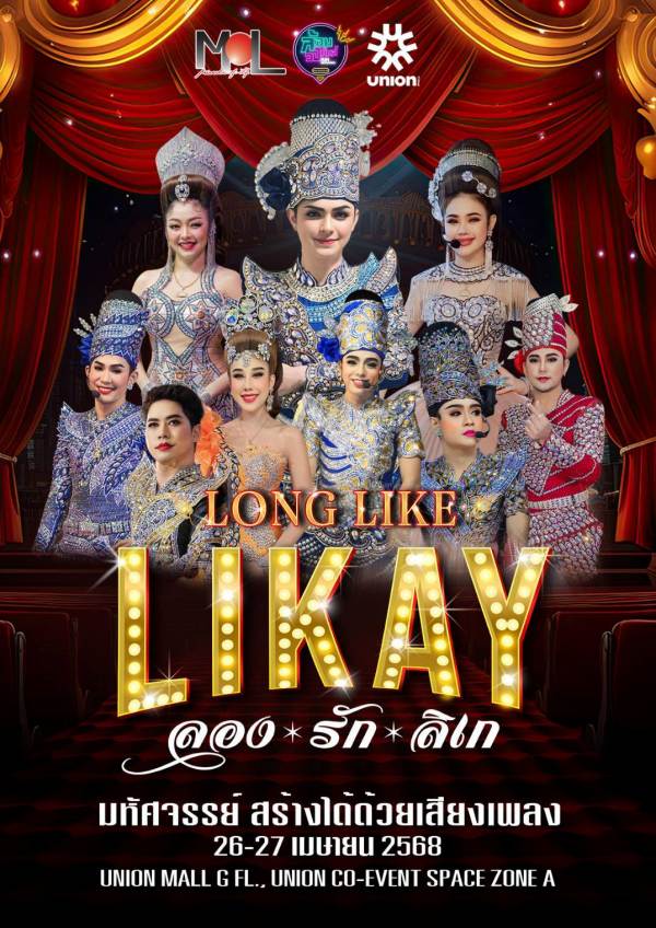 อย่าพลาด! มาร่วมอิ่มสุข อิ่มบุญ ในงานที่ทุกคนรอคอย “LONG LIKE LIKAY : ลอง รัก ลิเก” ในวันเสาร์ที่ 26 – อาทิตย์ที่ 27 เมษายน 2568 ที่ศูนย์การค้า ยูเนี่ยน มอลล์ ชั้นจี ยูเนี่ยน โคอีเวนท์สเปซ โซนเอ ตั้งแต่เวลา 13.00-18.00 น. พบกับกิจกรรมบนเวที 2 วัน 2 สไตล์ โดยวันเสาร์ที่ 26 เมษายน 2568 พบกับ การแสดงจากคณะลิเก ศรรามน้ำเพชร, การแสดงโขนจากทีม MeRich กล้าโขน, และโชว์แดร็กควีน (Drag Queen) บัตรที่นั่งโซน VIP ใกล้ชิดติดเวที ราคา 1,500 บาท, บัตรปกติราคา 700 บาท, และรับชมทางไลฟ์(กลุ่มปิด)ราคา 199 บาท วันอาทิตย์ที่ 27 เมษายน 2568 ฟรีตลอดวันกับโชว์แดร็กควีน (Drag Queen) และไฮไลท์มินิคอนเสิร์ตนำทีมโดย แบงค์ ศรราม พร้อมศิลปินจิตอาสา ปอย ธนัชชา, เฮ็น น้ำเพชร, เจน เจนจิรา, เบล พิสิษฐ์, เอส ปราชญา, และ เต๋า อโนทัย พร้อมศิลปินรับเชิญพิเศษ ก้าวหน้า-กิตติภัทร แก้วเจริญ สนใจติดตามและสอบถามรายละเอียดเพิ่มเติมได้ที่เพจ Facebook : Long Like Likay ลอง รัก ลิเก มาร่วมเป็นส่วนหนึ่งในการสร้างความสุข และสร้างกุศลร่วมกัน!