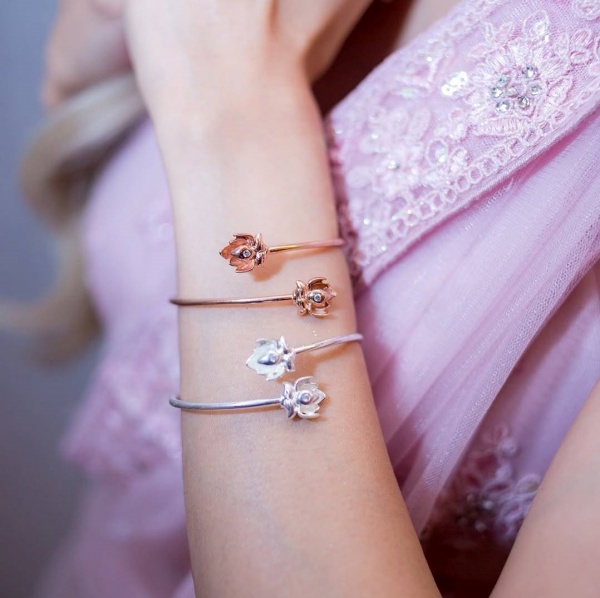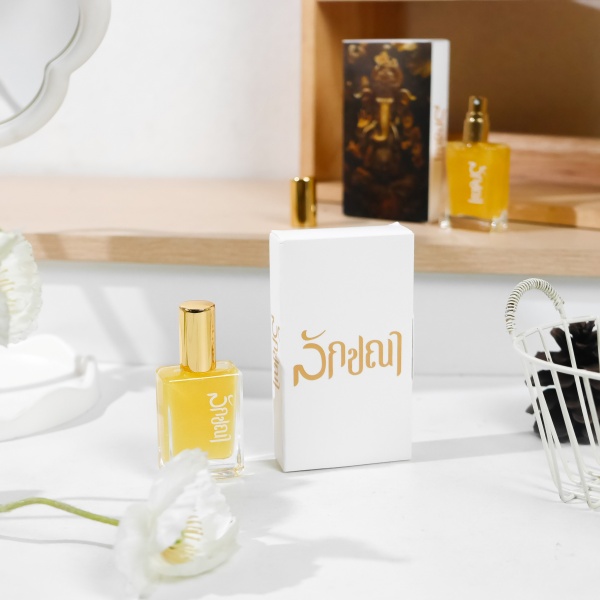 นอกจากต่างหูแล้วก็จะมีกำไลพระแม่ลักษมี ซึ่งดีไซน์ออกมาเป็นรูปดอกบัว มีทั้ง Pink gold และ White Gold เช่นกันกับต่างหู ใส่ได้ทั้งผู้หญิงและผู้ชาย หลายคนที่ได้ไปบูชาไปแล้วกลับมาบอกเป็นเสียงเดียวกันว่าปังมาก อีกหนึ่งอย่างที่อุ้มอยากแนะนำก็คือน้ำหอม สำหรับบางคนที่ไม่สะดวกจุดกำยาน ก็สามารถบูชาน้ำหอมนำกลับไปฉีดหรือพรมที่องค์เทพได้ หรือ อาจจะซื้อถวาย และนำกลับมาฉีดตัวเพื่อให้เสริมสิริมงคล สร้างสเน่ห์ให้ตัวเองก็ได้เช่นกันค่ะ เครื่องประดับของแบรนด์ลักขณานอกจากจะช่วยเติมเต็มลุคให้สวยแล้ว ยังเสริมความมั่นใจให้กับผู้ใส่ เป็นอีกไอเทมที่ช่วยเสริมโชคด้านต่าง ๆ ทั้งเรื่องการงาน การเงิน ความรักด้วยค่ะ
