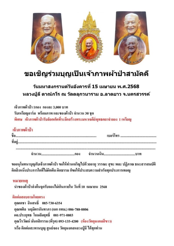 ขอเชิญร่วมทำบุญทอดผ้าป่ามหาสงกรานต์ ประจำปี 2568