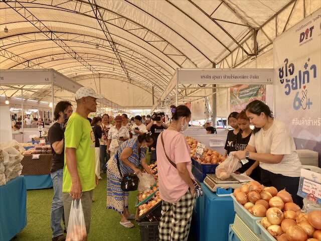 กรมการค้าภายในจัดงานธงฟ้ากระตุ้นเศรษฐกิจกรุงเทพฯ ซึ่งมีผู้ผลิต ผู้ประกอบการ กลุ่มเกษตรกร กลุ่มวิสาหกิจชุมชน และผู้ประกอบการรายกลางและรายย่อย (SMEs) นำสินค้าอุปโภคบริโภคกว่า 300 รายการ ลดสูงสุด 60% มาจำหน่ายให้กับพี่น้องประชาชนภายในงาน โดยเฉพาะผู้สูงอายุ เผยยังมีสินค้าไฮไลต์ ทั้งไข่ไก่ น้ำตาล น้ำมันปาล์มข้าวหอม และหอมหัวใหญ่ จำหน่ายทุกวันด้วย