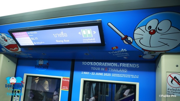 สำหรับแฟน ๆ ที่อดใจรอไม่ไหว สามารถพบกับโปรเจกต์พิเศษ “100% DORAEMON & FRIENDS TOUR IN THAILAND ร่วมกับ MRT” ที่จะเติมเต็มบรรยากาศแห่งโลกโดราเอมอนให้คุณ กับการตกแต่งสถานีรถไฟฟ้า MRT ทุกแห่งให้เต็มไปด้วยลวดลายโดราเอมอน ให้แฟนๆ ได้เก็บภาพบรรยากาศสุดประทับใจและอุ่นเครื่องก่อนชมนิทรรศการจริง และพิเศษสุด! กับกองทัพโดราเอมอนขนาดเท่าตัวจริง 13 ตัว ที่จะถูกนำมาชิมลางจัดแสดงให้ชมก่อนใครที่สถานีรถไฟฟ้า MRT พหลโยธินสถานีแบบพิเศษ โดยสามารถสัมผัสบรรยากาศสุดประทับใจเหล่านี้ได้ ตั้งแต่ วันนี้ – 28 เม.ย.นี้เท่านั้น