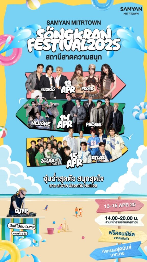 สงกรานต์นี้มาร่วมชุ่มฉ่ำสุดตัว สนุกสุดใจ สาด สะอาด ปลอดภัย No!แอล ให้สุดเหวี่ยงที่ “SAMYAN MITRTOWN SONGKRAN FESTIVAL 2025”ตั้งแต่ 13 – 15 เมษายนนี้ เวลา 14.00 – 20.00 น. ณ ลานหน้าศูนย์การค้าสามย่านมิตรทาวน์ สามารถเดินทางมางานสงกรานต์สามย่านมิตรทาวน์ได้สะดวกด้วย MRT สามย่าน ทางออก 2 และ สตาร์ทความสนุก ปาร์ตี้ฉ่ำ กับดีเจชื่อดัง ตลอด 3 วันที่สีลมเอจ กับ SILOM EDGE SONGKRAN FESTIVAL 2025 ตั้งแต่ 12 -14 เมษายนนี้ เวลา 13.00 – 21.00 น. สามารถเดินทางมาร่วมงานสงกรานต์สีลมเอจได้ง่ายๆโดยขนส่งสาธารณะ BTS ศาลาแดง ทางออก 5 หรือ MRT สีลม ทางออก 2