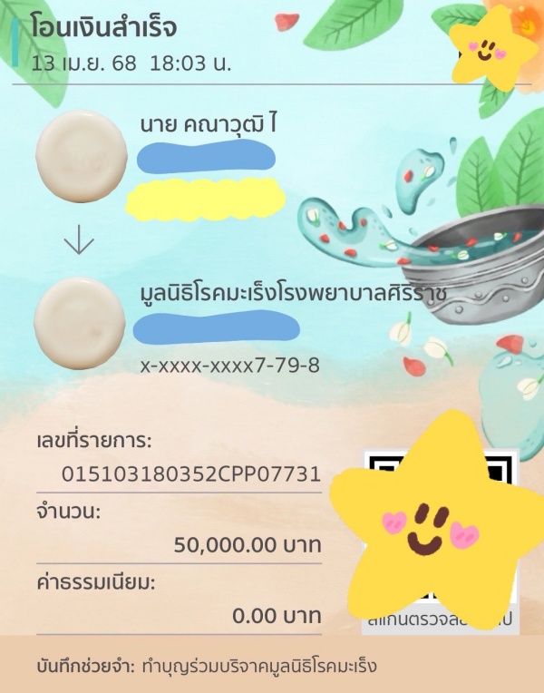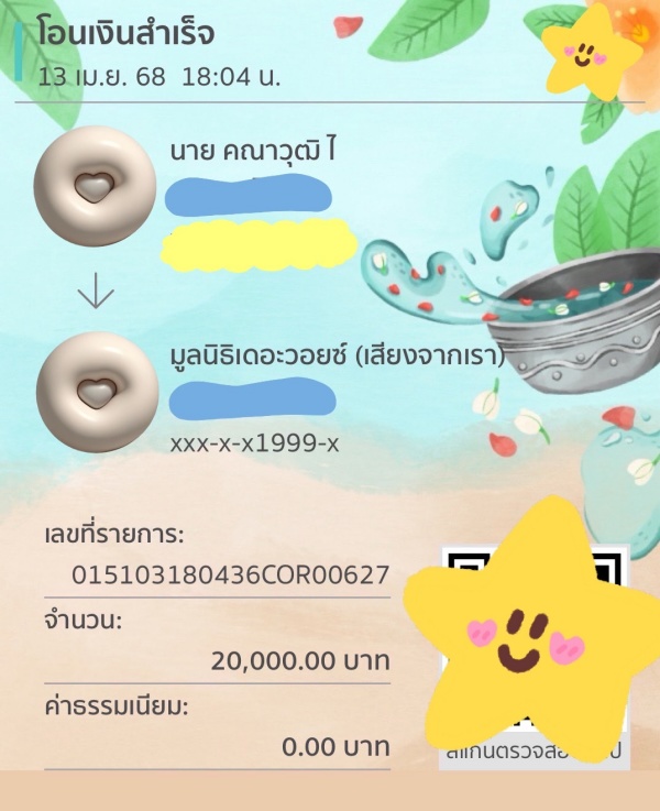 ทั้งนี้ทางหนุ่มกลัฟ ยังได้ร่วมทำบุญบริจาคเงินเพื่อสมทบทุนให้กับทางโรงพยาบาลเป็นทุนทรัพย์และจัดหาอุปกรณ์ทางการแพทย์ไว้รักษาผู้ที่เจ็บป่วยหรือผู้ที่มาใช้บริการให้เกิดประโยชน์ต่อไปในภายหน้าให้กับ 3 มูลนิธิ อาทิ มูลนิธิโรงพยาบาลเด็ก จำนวน 80,000 บาท , มูลนิธิโรคมะเร็งโรงพยาบาลศิริราช จำนวน 50,000 บาท , และมูลนิธิเดอะวอยซ์ (เสียงจากเรา) จำนวน 20,000 บาท รวมยอดบริจาคทั้งสิ้น 150,000 บาท