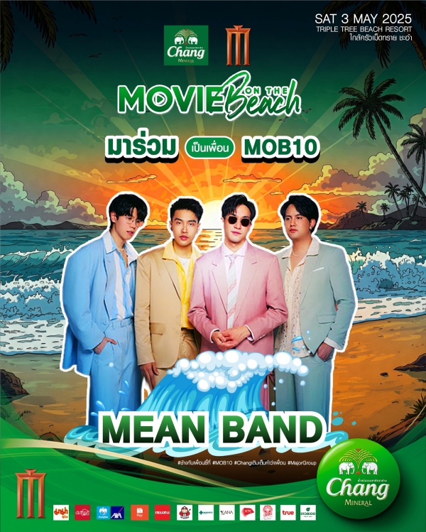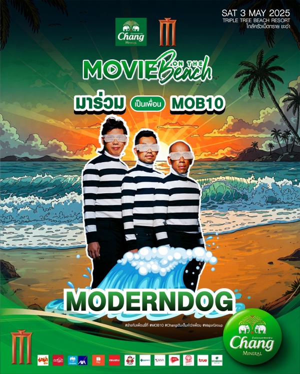 ปีนี้ “Movie on the Beach” จัดเต็มด้วยไลน์อัปศิลปินสุดฮอต ที่พร้อมมอบความสนุกและพลังแห่งเสียงดนตรีให้กับทุกคนตลอดค่ำคืน ได้แก่ BODYSLAM (บอดี้สแลม) ตำนานวงร็อกแห่งยุคที่ขนเพลงฮิตมาให้แฟน ๆ ได้กระโดดกันเต็มอารมณ์, URBOYTJ (ยัวร์บอยทีเจ) แร็ปเปอร์และนักร้องสุดเท่ ที่จะมาสร้างบรรยากาศสุดชิค รวมไปถึง LIPTA (ลิปตา) และ MEAN BAND (วงมีน) เจ้าของเพลงฮิตที่เต็มไปด้วยความละมุน, Paradox (พาราด็อกซ์) วงร็อกขวัญใจมหาชน และ Moderndog (โมเดิร์นด็อก) ตำนานอัลเทอร์เนทีฟร็อก ที่จะพาทุกคนย้อนวันวานไปกับเพลงฮิต นอกจากคอนเสิร์ตแล้ว ภายในงานยังมีการฉายภาพยนตร์กลางแจ้งสุดประทับใจ ท่ามกลางบรรยากาศริมทะเล ให้ทุกคนได้พักผ่อนและดื่มด่ำกับโมเมนต์สุดพิเศษ พร้อมเช็คอินริมชายหาด Triple Tree Beach Resort (ใกล้ครัวเม็ดทราย) ชะอำ จังหวัดเพชรบุรี ในวันเสาร์ที่ 3 พฤษภาคม 68 โดยเปิดเข้าพื้นที่ ตั้งแต่เวลา 15.00 น.เป็นต้นไป