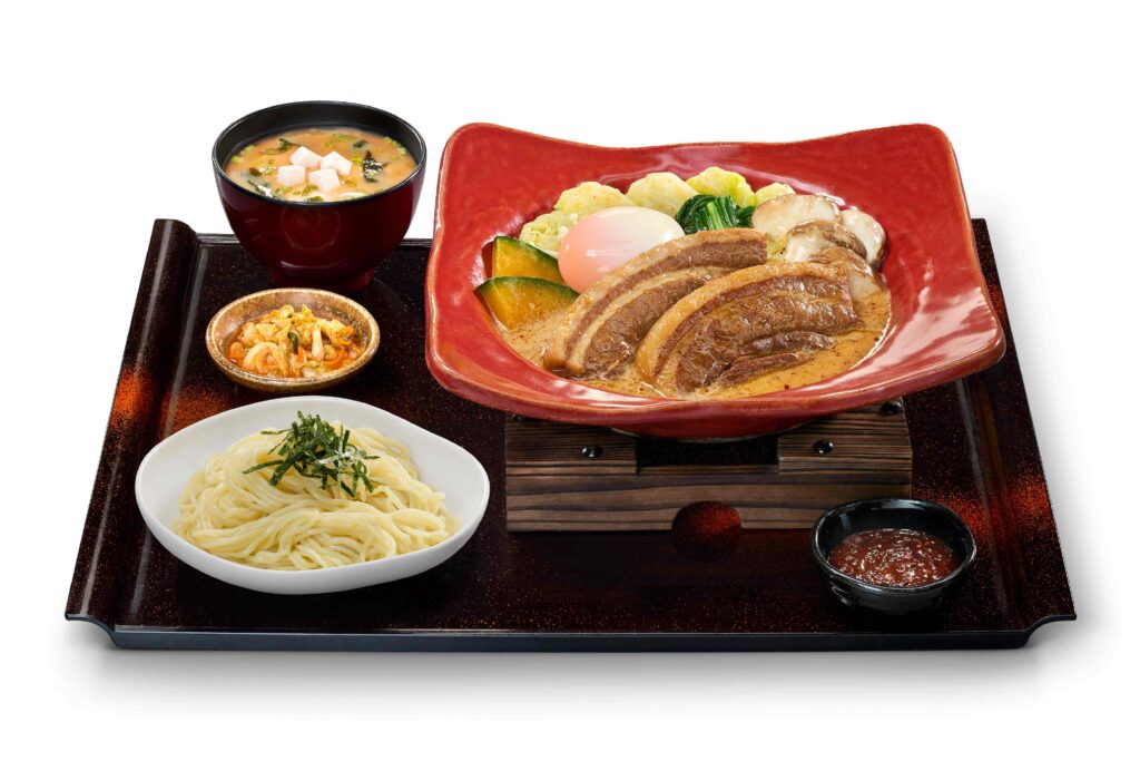 - คาคุนิ นาเบะ เทโชกุ (289 บาท): หมูคาคุนิชิ้นโตที่ผ่านการตุ๋นยาวนานหลายชั่วโมงจนเนื้อนุ่มละลายในปาก ในน้ำซุปกระดูกหมูเข้มข้น เพิ่มความอร่อยเผ็ดสไตล์ญี่ปุ่นด้วยซอสคาระมิโสะ ที่ใครได้ลองก็ต้องติดใจกับน้ำซุปรสชาติกลมกล่อมได้แรงบันดาลใจจากเมนูเส้นยอดขายอันดับหนึ่งอย่างราเม็งแชมป์เปี้ยน เสิร์ฟพร้อมข้าวญี่ปุ่นหรือเส้นราเม็งที่ลูกค้าเลือกเองได้ตามต้องการ พร้อมกิมจิ ซุปมิโสะ และซอสคาระมิโสะเพิ่มความเผ็ดยิ่งขึ้น