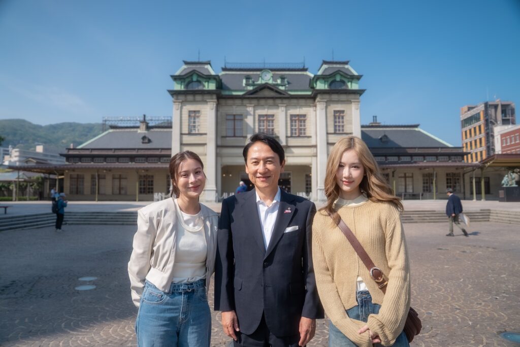 “บอส-คีตะวัฒน์ ชินโคตร” CEO & Executive Producer : เวลเคิร์ฟ สตูดิโอ เผยว่า “เมืองคิตะคิวชู ประเทศญี่ปุ่น เป็นเมืองที่มีเสน่ห์เฉพาะตัว ธรรมชาติ สถาปัตยกรรม วัฒนธรรม เหมาะกับเรื่องราวของตัวละครในซีรีส์ ซึ่งเนื้อเรื่องจะเกี่ยวกับสถาปนิก และเมืองคิตะคิวชูก็มีสถาปนิกชื่อดังอย่าง คุณอาราตะ อิโซซากิ มีสถาปัตยกรรมที่สวยงามเหมาะมากกับการถ่ายทำ โดยทางเวลเคิร์ฟฯ ร่วมกับ KITAKYUSHU FILM COMMISSION ทีมงานจากเมืองคิตะคิวชู ร่วมกันวางแผน เลือกโลเคชั่น จัดตารางถ่ายทำเพื่อให้การทำงานราบรื่นที่สุด ยังมีการวางแผนด้านลอจิสติกส์ และความปลอดภัยอย่างละเอียดด้วยครับ ซึ่งเมืองคิตะคิวชู เป็นเมืองทางตอนเหนือของเกาะคิวชู ที่มีทั้งวิวภูเขา และทะเล ถือว่าเป็นเมืองเก่าที่ผสมผสานระหว่างวัฒนธรรมญี่ปุ่นดั้งเดิมกับความโมเดิร์นอย่างลงตัว เป็นเมืองที่เงียบสงบแต่เปี่ยมไปด้วยแรงบันดาลใจ โลเคชั่นหลักๆ ก็มีปราสาทโคคุระ (Kokura Castle ) , Mojiko Retro และ Wakato Bridge ซึ่งเรายังได้รับเกียรติจากท่าน “คาซึฮิสะ ทาเคอุจิ” นายกเทศมนตรีเมืองคิตะคิวชู ที่ได้มาเยี่ยม มาให้กำลังใจทีมงานและนักแสดงที่กองถ่ายด้วยครับ