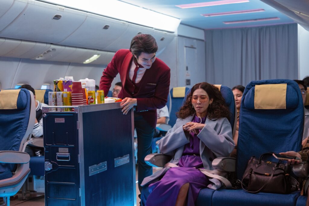 ใน EP. แรก ซีนปะทะสุดพีคของสองสายการบิน Glamorous Airline ปะทะ Porn Airline กลายเป็นฉากที่ถูกแชร์และพูดถึงมากที่สุดในโซเชียล ด้วยความแสบแซ่บของตัวละครและการตบมุกโบ๊ะบ๊ะที่เรียกเสียงฮาแบบ nonstop