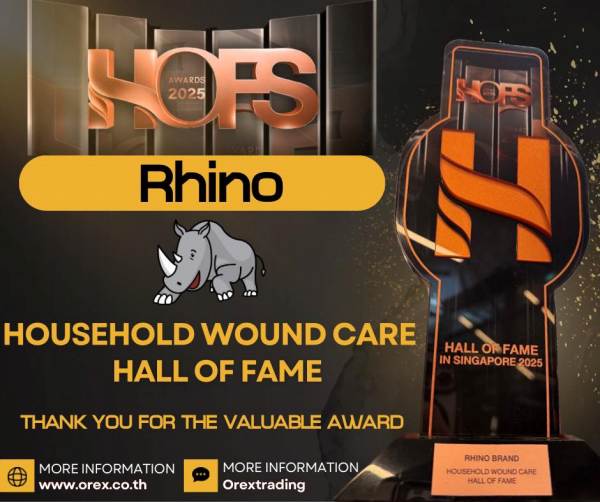 แบรนด์ Rhino โดยบริษัท โอเร็กซ์ เทรดดิ้ง จำกัด ได้รับรางวัลในสาขา Household Wound Care Hall of Fame จากงาน HOFS Awards 2025 ณ โรงแรม The Ritz-Carlton Millenia Singapore ซึ่งยกย่องแบรนด์เป็นผู้นำด้านพลาสเตอร์ดูแลบาดแผลในครัวเรือน ทั้งในด้านความคิดสร้างสรรค์ (Creative Thinking), การเป็น Top of Mind และบทบาทต่อสังคม (Social Acknowledgement) โดยมี ภญ. ชนัญญา หินทอง รองประธานกรรมการ (Vice President) เป็นผู้แทนขึ้นรับรางวัลอย่างเป็นทางการ
