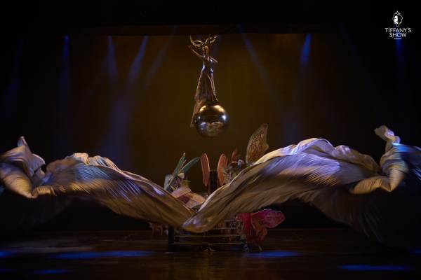- การแสดงชุด “Butterfly Ball” – อีกหนึ่งการแสดงอันเป็นเอกลักษณ์ ว่าด้วยการเดินทางของชีวิตผีเสื้อที่ฟูมฟักตนเองในดักแด้ ก่อนเติบใหญ่เป็นผีเสื้อแสนสวยงามและเป็นอิสระ สะท้อนถึงแก่นแท้ของทิฟฟานี่โชว์ ในการเป็นพื้นที่แห่งการเฉลิมฉลองความหลากหลายและการยอมรับตัวตน