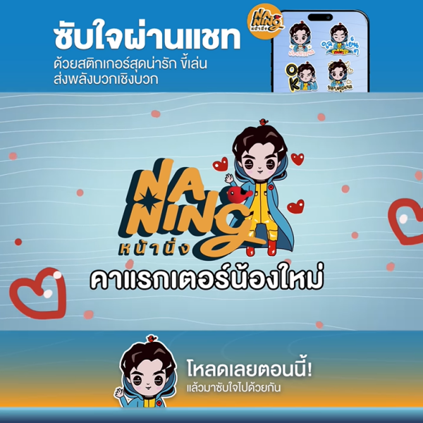 เปิดตัวครั้งแรกแล้ววันนี้ กับสติกเกอร์ไลน์ “NA-NING” (หน้านิ่ง) คาแรกเตอร์น้องใหม่จาก ช่องวัน31และซีรีส์ “9 YEARS OF YOU แต่ละปีที่มีเธอ” โดยฝีมือการวาดของครูปาน-สมนึก คลังนอก อาร์ติสต์ชื่อดังผู้สร้างสรรค์ “NA-NING” (หน้านิ่ง) ให้มีคาแรกเตอร์เรียบง่าย อบอุ่น พร้อมจะซับใจและอยู่เคียงข้างทุกคน