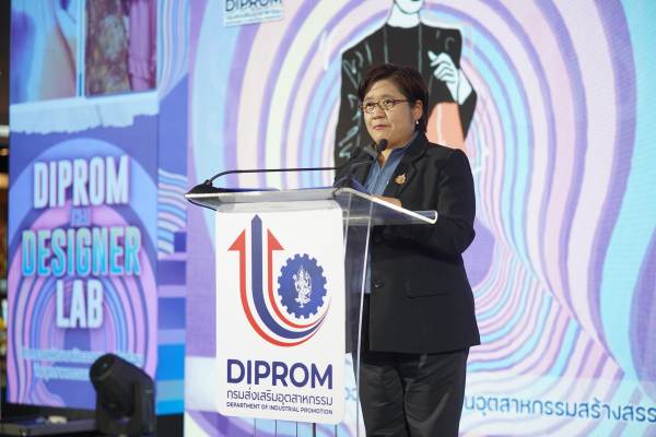 นางดวงดาว กล่าวเพิ่มเติมว่า กรมส่งเสริมอุตสาหกรรม หรือ ดีพร้อม (DIPROM) ได้ดำเนินการผ่านแนวทาง “ดีพร้อมคอมมูนิตี้ ที่นี่มีแต่ให้” (DIPROM Community) ซึ่งเป็นการนำวิสาหกิจไทย เข้ามาสู่ระบบบริหารจัดการของดีพร้อม โดยดีพร้อมจะส่งเสริมและสนับสนุนด้วย 6 กลไกที่สำคัญ คือ 1.การวิเคราะห์ข้อมูลเชิงลึก (Data Analytic) 2.การใช้เทคโนโลยี ดิจิทัล นวัตกรรม และความคิดสร้างสรรค์ (Technology /Digital /Innovation /Creative) 3.การสนับสนุนให้เข้าถึงแหล่งเงินทุน (Funding) 4.การเชื่อมสิทธิประโยชน์ (Privilege) 5.การเชื่อมโยงเครือข่ายพันธมิตร (Networking) และ 6.การผลักดันธุรกิจสู่สากล (Connect to the world) เพื่อให้วิสาหกิจไทยในระบบการพัฒนา สามารถ “สร้างงาน สร้างรายได้ สร้างเครือข่าย” ยกระดับธุรกิจให้เติบโต และแข่งขันได้อย่างมั่นคงในอนาคต โดยเน้นการพัฒนาศักยภาพของนักออกแบบให้มีองค์ความรู้ใหม่ ๆ สามารถนำเครื่องมือเทคโนโลยีและนวัตกรรมมาประยุกต์ใช้ในหลาย ๆ ด้าน ทั้งด้านการออกแบบ กระบวนการผลิต การตลาด มาต่อยอดความคิดสร้างสรรค์ บวกกับประสบการณ์ที่ได้รับจากการทำงานร่วมกันกับเพื่อนนักออกแบบ และผู้เชี่ยวชาญที่มีชื่อเสียงผ่าน “กิจกรรมพัฒนานักออกแบบดีพร้อมในอุตสาหกรรมสร้างสรรค์” หรือ DIPROM Thai Designer Lab ซึ่งมีผู้ผ่านการเข้าร่วมกิจกรรม จำนวน 28 คน โดยกิจกรรมดังกล่าวมีหลักสูตรต่าง ๆ ประกอบด้วย 1) การฝึกอบรมถ่ายทอดองค์ความรู้ ด้านการทำธุรกิจแฟชั่น การสร้างแบรนด์ การออกแบบ การสร้างความเชื่อมั่นในแบรนด์สินค้าและการตลาดที่สามารถตอบสนองตามความต้องการของผู้บริโภค 2) การศึกษาดูงาน ณ LV The Place Bangkok และ OHM Thailand เพื่อสร้างแรงบันดาลใจในการออกแบบ 3) การจัดกิจกรรมค่ายปฏิบัติการออกแบบ (Design Lab) โดยมีนักออกแบบมืออาชีพให้คำปรึกษาแนะนำเชิงลึก บ่มเพาะไอเดียสร้างสรรค์ เสริมเทคนิค และแนวคิดด้านการออกแบบพัฒนาผลิตภัณฑ์และบริการสู่ระดับสากล 4) การให้คำปรึกษาแนะนำด้านการออกแบบและพัฒนาผลิตภัณฑ์ต้นแบบที่ตรงกับความต้องการของตลาดแต่ยังคงความเป็นเอกลักษณ์ของแบรนด์ไว้ และ 5) การจัดประกวดผลิตภัณฑ์ต้นแบบ โดยมีโจทย์คือ “Soft Power” โดยการนำศักยภาพที่มีอยู่มาใช้ให้เกิดประโยชน์สูงสุดและสร้างมูลค่าเพิ่ม รวมถึงการสร้างความแตกต่างและการสร้างการรับรู้ที่โดดเด่น ในการโปรโมท Soft Power ของไทยอย่างมีประสิทธิภาพ เพื่อให้เป็นที่รู้จักและเป็นที่ยอมรับในระดับโลกพร้อมนำเสนอผลงานเพื่อประกวด และคัดเลือกผู้ชนะ จำนวน 3 รางวัล