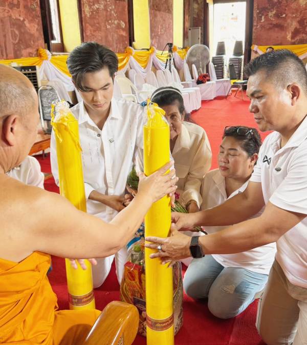 “เพชร คฑาวุธ” พาครอบครัวทำบุญ ถวายเทียนพรรษา สืบสานประเพณีวันสำคัญทางพุทธศาสนา