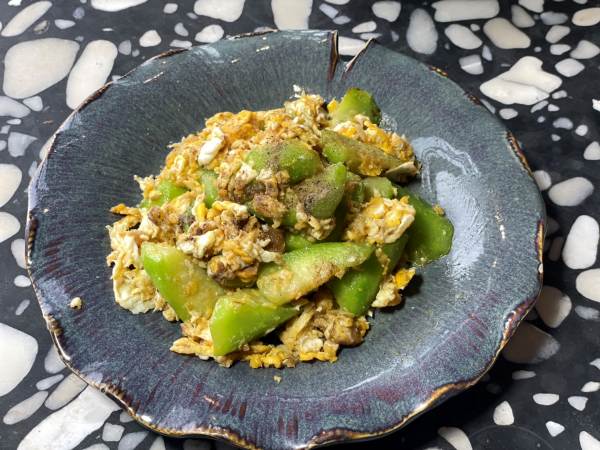 บวบผัดไข่ใส่ปลาเค็ม 250