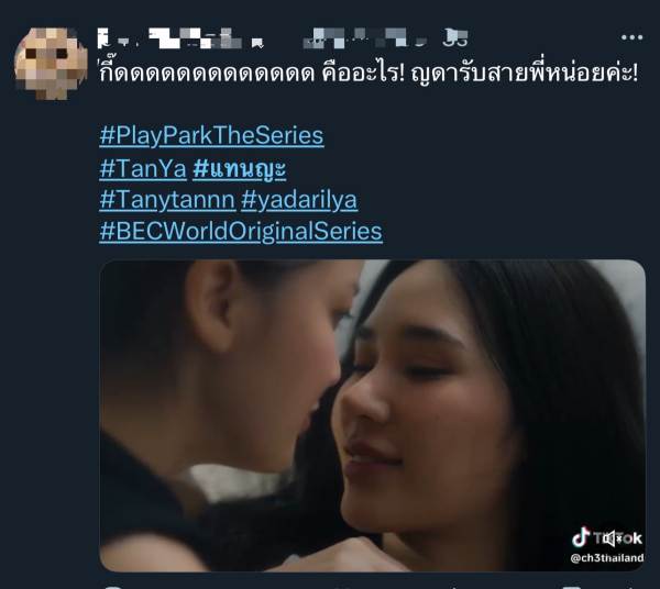 เปิดตัวสมฐานะเคมีทำลายล้างจริง ๆ สำหรับ “แทน ดวงแก้ว” และ “ญดา นริลญา” ที่มาประเดิมเล่นซีรีส์แซฟฟิกด้วยกันครั้งแรกก็สร้างปรากฏการณ์โซเชียลแตก! ล่าสุดช่อง 3 ก็ไม่ปล่อยให้รอนานส่ง Official Pilot ซีรีส์ “Play Park รักไม่คาดฝัน” ซึ่งเป็น Original Series ของ BEC World Original Seriesทำเอาแฟนคลับหวี๊ดกันสนั่นโซเชียล งานนี้ยิ่งกระตุ้นต่อมความอยากดูมากขึ้นไปอีก