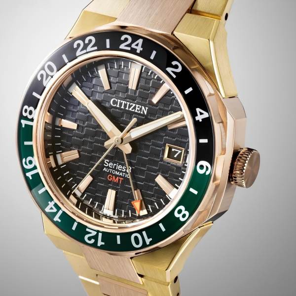 และ CITIZEN Series 8 880 GMT คอลเลกชัน Series 8 รุ่นท็อปของแบรนด์ นาฬิกาทรงสปอร์ตดีไซน์หรู สายสเตนเลสสตีล ที่เข้ากับตัวเรือนสีทอง พร้อมกลไกอัตโนมัติฟังก์ชัน GMT ที่เต็มไปด้วยความประณีตทั้งงานประกอบและงานขัด ในราคา 75,500 บาท