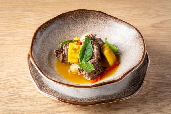 ตามด้วยเมนูเด่นอย่าง “แกงเผ็ดขาเป็ดกรอบ” เนื้อขาเป็ดกรอบนอกนุ่มในมากับแกงกะทิรสจัดจ้าน เสิร์ฟพร้อมข้าวสวยหอมมะลิหอมกรุ่นกำลังดี ปิดท้ายมื้ออาหารด้วยของหวานเกินห้ามใจอย่างเมนู “ดอกมะลิ หยกมณี” พานาคอตต้ารสเลิศกลิ่นมะลิ เสิร์ฟพร้อมสาคูใบเตยและน้ำกระสาย ด้วยองค์ประกอบจากขนมหวานไทยแบบดั้งเดิม ที่ถูกรังสรรค์ขึ้นมาใหม่ได้อย่างแยบยล