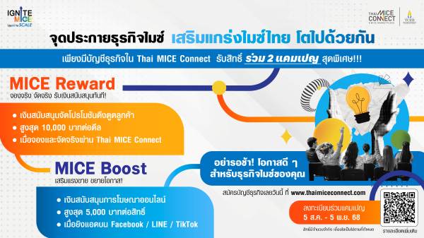 โครงการดังกล่าวมีเป้าหมายเพื่อมุ่งเน้นการเพิ่มขีดความสามารถทางการแข่งขันของผู้ประกอบการ ผ่านสองกิจกรรมหลัก ได้แก่ กิจกรรมส่งเสริมการตลาด ซึ่งประกอบด้วย 2 แคมเปญ คือแคมเปญ “MICE Reward” ที่เปิดโอกาสให้ผู้ประกอบการได้รับเงินสนับสนุนสูงสุด 10,000 บาทต่อดีล เมื่อเกิดการจองและจัดงานจริงผ่านแพลตฟอร์ม Thai MICE Connect และแคมเปญ “MICE Boost” ที่สนับสนุนงบประมาณการโฆษณาออนไลน์สูงสุด 5,000 บาทต่อสิทธิ์ เพื่อให้ผู้ประกอบการสามารถเข้าถึงกลุ่มลูกค้าองค์กรและนักเดินทางไมซ์ที่มีกำลังซื้อสูงผ่านช่องทางดิจิทัลยอดนิยมอย่าง Facebook, LINE และ TikTok ผู้ประกอบการที่มีบัญชีธุรกิจใน Thai MICE Connect ลงทะเบียนเข้าร่วมแคมเปญส่งเสริมการตลาดได้ตั้งแต่วันที่ 5 สิงหาคม – 5 พฤศจิกายน 2568