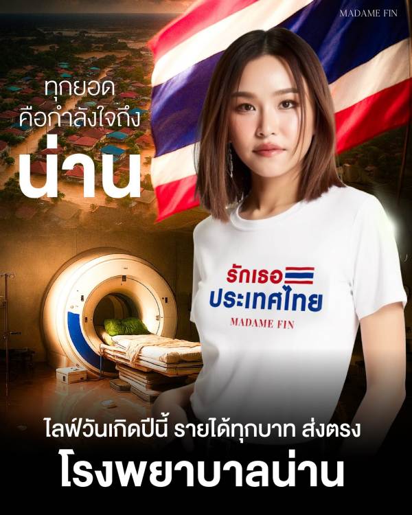 “ธัญญ่า-อ้น” แท็กทีม “มาดามฟิน” ส่งต่อรายได้ไลฟ์วันเกิด ช่วย รพ.น่าน ฝ่าวิกฤตน้ำท่วม 9 ส.ค.นี้