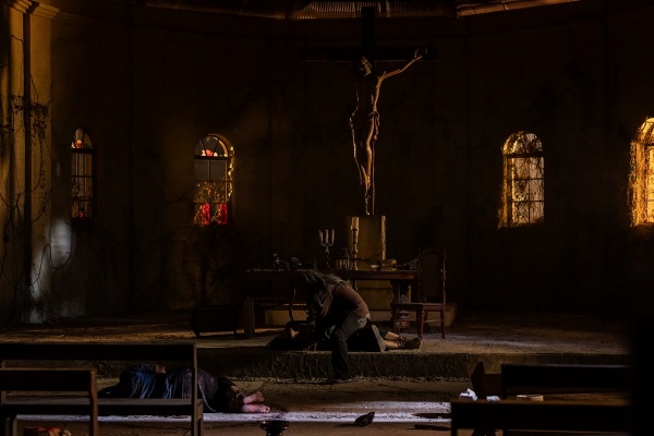 ด้วยฉากที่ต้องเล่นกับโบสถ์เก่าแก่แทบทุกซอกทุกมุมทำให้ไม่สะดวกที่จะใช้สถานที่จริงในการถ่ายทำ ทางทีมออกแบบงานสร้างมือรางวัลอย่าง “สุดเขตร ล้วนเจริญ” (ธี่หยด, ขุนพันธ์, แสงกระสือ) จึงได้ทำการสร้างโบสถ์จำลองขนาดเกือบเท่าของจริงขึ้นมาที่กรุงเทพฯ สำหรับการถ่ายทำโดยเฉพาะ โดยมีต้นแบบมาจาก “โบสถ์คำเกิ้ม” โบราณสถานที่มีอายุกว่า 100 ปี ในจังหวัดนครพนม ซึ่งเป็นจุดเช็กอินสุดสวยงามที่ห้ามพลาดอีกแห่งของจังหวัด งานนี้ใช้ทุนสร้างหลักล้านและเวลาก่อสร้างประมาณ 2 เดือน ผ่านการวางแผน รีเซิร์ช และลงดีเทลอย่างละเอียดยิบเพื่อให้ดูเหมือนของจริงมากที่สุดทั้งโครงสร้างภายนอกและภายใน รวมไปถึงไฮไลต์ไม้กางเขนพระเยซูสูงกว่า 5 เมตร เพื่อให้ผู้กำกับและทีมนักแสดงได้ระเบิดความมันส์ทะลักจอในซีนแอ็กชันสุดเดือด เผชิญหน้าความคลั่งของผีร้ายได้อย่างเต็มที่ และเพิ่มความขลังให้กับความสยองขวัญท่าใหม่ที่ไม่ซ้ำใครในการถ่ายทำเพียง 2 วัน
