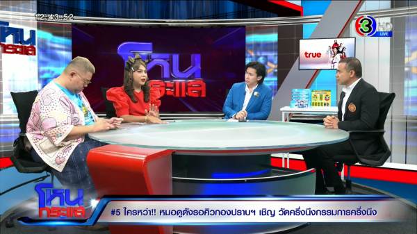 รายการ โหนกระแส วันที่ 12 ส.ค. ดำเนินรายการโดย “หนุ่ม กรรชัย กำเนิดพลอย” ผลิตในนามบริษัท ดีคืนดีวัน จำกัด ออกอากาศทุกวันจันทร์-ศุกร์ เวลา 12.35 น. ทางช่อง 3 กดหมายเลข 33 ยังเกาะติดเหตุการณ์ “หมอบี ทูตสื่อวิญญาณ” โดนสังคมครหายักยอกเงินบริจาควัดพระบาทน้ำพุ เรื่องราวบานปลายไปถึง “หลวงพ่ออลงกต” ประเด็นที่ดิน 2 พันไร่ที่จ.ลพบุรี โดยวันนี้สัมภาษณ์ แพรรี่ ไพรวัลย์, จตุรงค์ จงอาษา นักวิชาการอิสระด้านพระพุทธศาสนา , ดร.ประยุทธ ประเทศเสนา หรือ มหาหมี รองประธานมูลนิธิทนายกองทัพธรรม