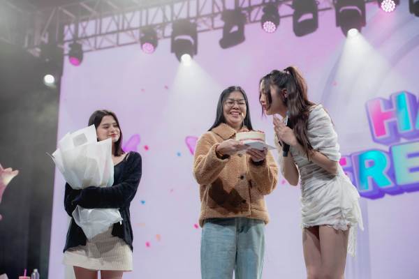 และเซอร์ไพร์สซ้อนเซอร์ไพร์ส เมื่อคู่จิ้นคู่ใจ “เบ็คกี้-รีเบคก้า” เคลียร์คิวด่วน วิ่งมาจากสตูดิโอที่เพิ่งถ่ายงานเสร็จสด ๆ ร้อน ๆ หอบดอกไม้สีขาวช่อต่อ โชว์พลังรักบริสุทธิ์ห่วงใยมอบให้บนเวที พร้อมด้วย “แม่นัน” ที่หอบเค้กและคำอวยพรอันเป็นมงคลเพื่อมอบให้กับลูกสาวสุดที่รัก
