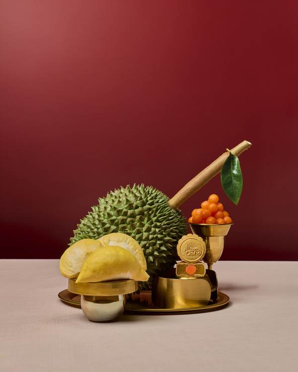 เชฟวิชิต มุกุระ กล่าวว่า “ในแต่ละปีเราไม่เคยหยุดที่จะรังสรรค์ความพิเศษ สำหรับเซ็ตขนมไหว้พระจันทร์ปีนี้นอกจากรสดั้งเดิมทั้ง 3 ไส้ คือ ไส้คัสตาร์ด, ไส้เม็ดบัวเม็ดแตงโม และไส้ทุเรียนไข่เค็มแล้ว เรายังตอบรับกระแสมัทฉะฟีเวอร์ กับ ไส้มัทฉะพิสตาชิโอ ไส้ใหม่มาเป็นซิกเนเจอร์รสชาติที่ 4 ของร้านรอยัล โอชา ที่จะบรรจุอยู่ทั้ง 2 เซ็ต โดยนำมัทฉะคุณภาพเกรดพรีเมียมจากประเทศญี่ปุ่น เนื้อแป้งบางที่ยังคงรสชาติความเป็นมัทฉะ และมีกลิ่นหอมชวนรับประทาน ส่วนไส้จะมีความกรุบของถั่วพิสตาชิโอหวานน้อย เมื่อทานรวมกันทำให้คำนี้กลมกล่อมกำลังดี และมีความหอมของมัทฉะอวลอยู่ในปาก ด้วยความที่ รอยัล โอชา เป็นร้านอาหารไทยจึงอยากใส่ความเป็นไทยเข้าไป รวมถึงอยากให้ทุกท่านได้ใกล้ชิดธรรมชาติมากที่สุด จึงเสาะหาวัตถุดิบที่ตอบโจทย์จนได้มาเป็น 2 ไส้สุดพิเศษสำหรับปีนี้ ได้แก่ ไส้หมูฝอยน้ำพริกมะขามไข่เค็ม สำหรับผู้ที่ชอบของคาว โดยน้ำพริกมะขามเป็นเอกลักษณ์ของทางร้าน รอยัล โอชา ซึ่งอยากให้ผู้ที่รับประทานคำนี้เข้าไปแล้วนึกถึงความอร่อยจากร้านของเรา โดยเริ่มจากการทำหมูฝอย แล้วค่อยนำมาผัดกับน้ำพริกมะขามสูตรพิเศษของทางร้าน ผัดจนได้ความกลมกล่อมที่ลงตัวจึงนำมาทำเป็นไส้ขนมไหว้พระจันทร์ และ ไส้สาหร่ายงา ซึ่งเป็นเจ้าแรกที่คิดเมนูแพลนต์เบส เพื่อเอาใจสายสุขภาพและผู้ที่ชอบทานวีแกนและไม่ทานเนื้อสัตว์ โดยนำสาหร่ายไก หรือ ไกยี ซึ่งป็นวัตถุดิบประจำท้องถิ่นของทางภาคเหนือ ที่มีให้ทานเฉพาะตามฤดูกาลเท่านั้น นำมาทำความสะอาดผ่านกรรมวิธีที่ประณีต ผสมด้วยงาขาวเพื่อให้มีกลิ่นหอม และเพิ่มเท็กเจอร์เวลากัดในแต่ละคำด้วยเม็ดบัว ทำให้คำนี้เป็นคำที่ลงตัวหวานน้อยเหมาะกับคนที่รักสุขภาพอย่างแท้จริง ซึ่งทั้งสองไส้นี้สามารถเปลี่ยนไส้ในเซ็ตได้ แต่ต้องสั่งจองล่วงหน้า 3 วัน เพราะหมูฝอยน้ำพริกมะขามต้องเตรียมวัตถุดิบและทำสดใหม่ทุกวัน ส่วนสาหร่ายไกยีเป็นพืชตามฤดูกาลจึงต้องมีจัดการเตรียมวัตถุดิบให้เพียงพอต่อความต้องการในแต่ละวันด้วยเช่นกัน