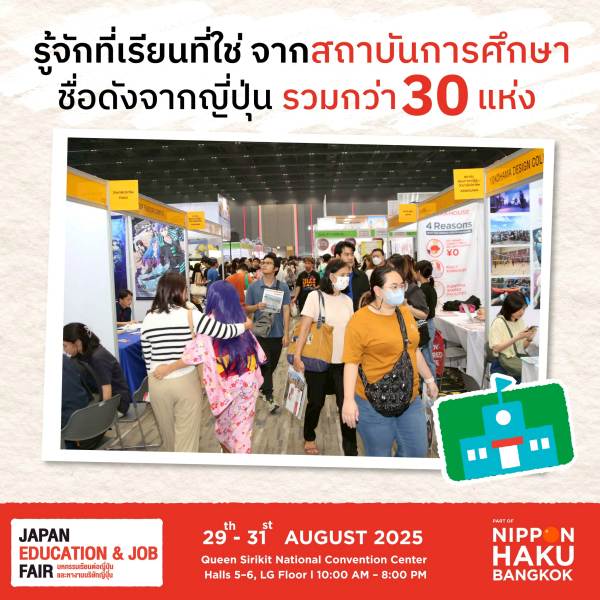เจเอ็ดดูเคชั่น สถาบันสอนภาษาและศูนย์แนะแนวศึกษาต่อประเทศญี่ปุ่น ผนึกกำลัง สถานเอกอัครราชฑูตญี่ปุ่นประจำประเทศไทย, องค์กรภาครัฐของประเทศญี่ปุ่น และกรุงเทพมหานคร เตรียมจัดมหกรรมของคนรักญี่ปุ่นแบบครบทุกมิติ กับงาน “นิปปอนฮาคุ แบงคอก 2025” (NIPPON HAKU BANGKOK 2025) ฉลองครบรอบ 10 ปีของการจัดงาน กับคอนเซ็ปต์ “ยิ่งรู้จัก ยิ่งรักญี่ปุ่น” ที่พร้อมชวนทุกคนมารู้จักญี่ปุ่นให้ลึกซึ้งมากยิ่งขึ้น กับหลากหลายเรื่องราวสุดพิเศษที่เตรียมมาเพื่อให้รักญี่ปุ่นมากขึ้นไปด้วยกัน ทั้งเรื่องการศึกษา วัฒนธรรม การท่องเที่ยว อาหาร ธุรกิจ และกิจกรรมความบันเทิง ที่รับรองว่าคนรักญี่ปุ่นต้องฟินจนใจฟูกันแน่นอน! งานจัดขึ้น ระหว่างวันที่ 29 – 31 สิงหาคม 2568 ณ ฮอลล์ 5 – 6 ชั้น LG ศูนย์ประชุมแห่งชาติสิริกิติ์