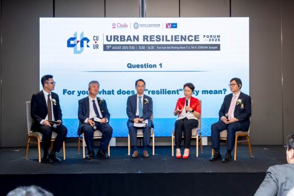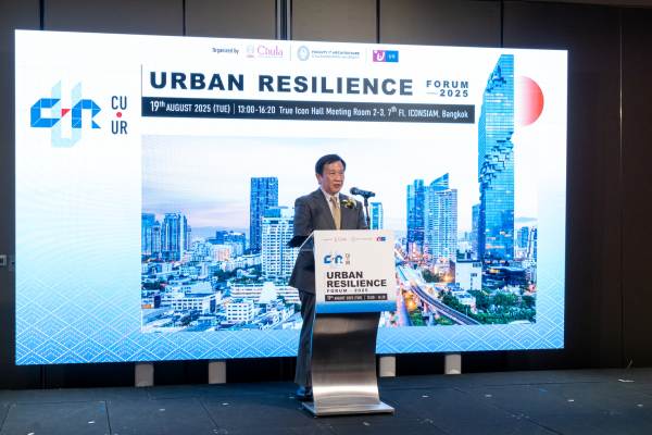 ท่ามกลางปัญหามลพิษ ภัยพิบัติ น้ำท่วม การเปลี่ยนแปลงสภาพภูมิอากาศ และสังคมสูงวัย ส่งผลให้ประเทศไทยกำลังก้าวเข้าสู่ช่วงหัวเลี้ยวหัวต่อของการพัฒนาเมือง คณะสถาปัตยกรรมศาสตร์ จุฬาลงกรณ์มหาวิทยาลัย จึงร่วมกับองค์การพัฒนาและฟื้นฟูเมือง (Urban Renaissance Agency: UR) ประเทศญี่ปุ่น จัดงาน “Urban Resilience Forum 2025” เมื่อวันที่ 19 สิงหาคม 2568 ณ TRUE ICON HALL ไอคอนสยาม กรุงเทพมหานคร เพื่อสร้างเวทีแลกเปลี่ยนความรู้ด้านการพัฒนาเมืองอย่างยั่งยืน พร้อมทั้งลงนามบันทึกความเข้าใจ (MOU) เพื่อขับเคลื่อนงานวิจัย การออกแบบ และการสร้างกลไกใหม่ ๆ ให้เมืองไทยสามารถเติบโตได้ท่ามกลางความท้าทายในอนาคต