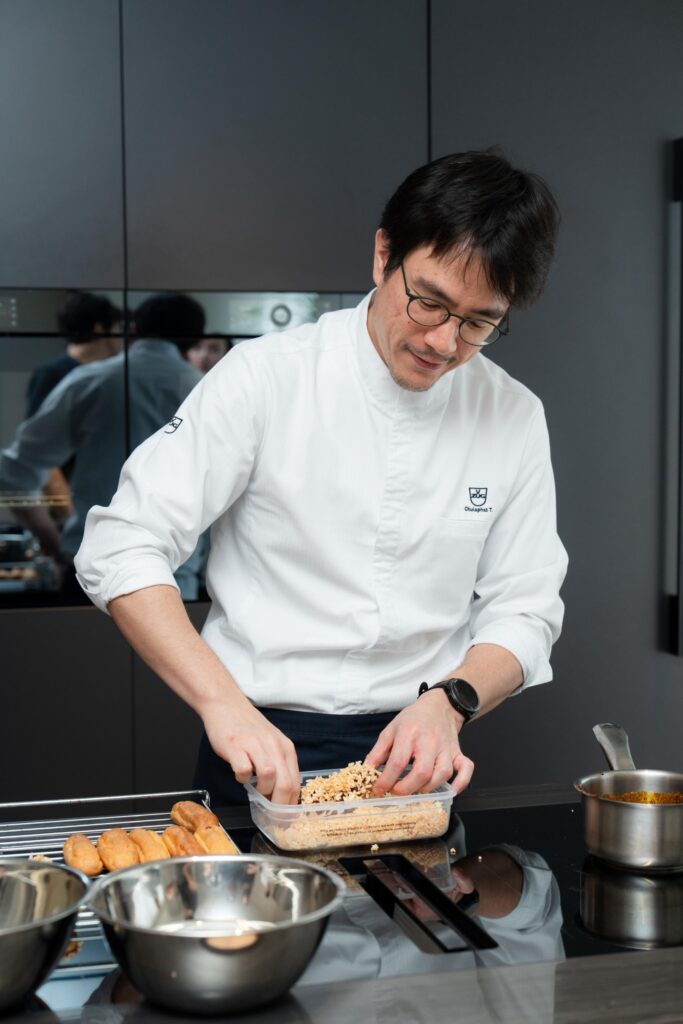 เกี่ยวกับเชฟชู – จุลพัทธเทพตระการพรจุลพัทธ “เชฟชู” เทพตระการพร อดีตนักศึกษาด้านกฎหมายสิทธิมนุษยชนที่ปารีส ผู้ก่อตั้งร้าน Sauvage ร้านเพสทรีในกรุงเทพฯ ที่มีชื่อเสียงจากการผสมผสานความเป็นงานคราฟต์เข้ากับวัตถุดิบท้องถิ่นของไทย เชฟชูค้นพบความหลงใหลในการทำขนมอบเมื่ออายุ 28 ปี เขาเข้ารับการศึกษาที่ Le Cordon Bleu Dusit และในฝรั่งเศสก่อนที่จะกลับมาเปิดร้านเพสทรีเป็นของตัวเองที่เมืองไทย เชฟชูยึดมั่นในปรัชญาการใช้วัตถุดิบธรรมชาติและการสร้างสรรค์รสชาติใหม่ซึ่งยอมรับในความไม่สมบูรณ์แบบ เชิดชูวัตถุดิบท้องถิ่น และมุ่งลดขยะอาหาร เชฟชูเป็นที่รู้จักจากการจับคู่รสชาติที่แปลกใหม่ เช่น Miso Caramel Flan และ Smoked Milk Chou ปัจจุบัน Sauvage และสาขาใหม่ ณ Ekkamai Corner ถ่ายทอดปรัชญาที่ผสมผสานความแม่นยำ ความคิดสร้างสรรค์ และความยั่งยืน