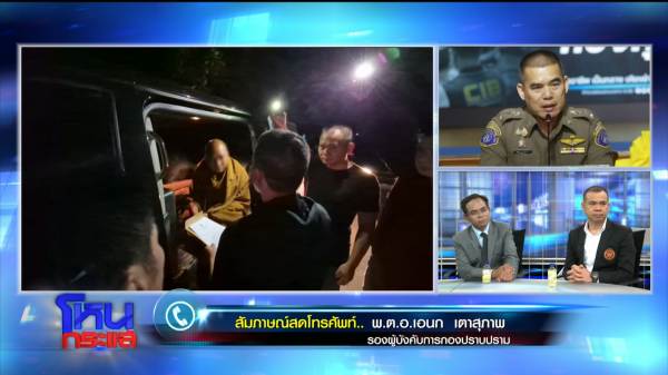 พ.ต.อ.เอนก : ยังไม่ได้คุยกับฝ่ายสืบสวน มาเข้าทำการตรวจค้นที่วัดกับทีมสืบสวนช่วงเช้า ยังไม่เจอกันเลย