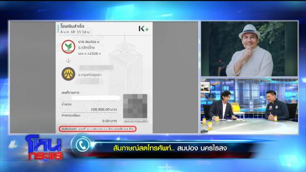 สมปอง : ผมไม่ได้เอ๊ะครับ ผมไม่ได้กังวลใจ ผมไม่สะดวกผมก็ให้ทีมงานผมโอนแทนก่อนก็ได้ แล้วผมก็ใช้หนี้เขา มันเกิดขึ้นได้ เพราะการหยิบยืม การโอนให้ก่อนแล้วคืนเงินให้ ผมเองก็เคยทำ ผมก็มีเงินส่วนตัวถ้าผมจำเป็นต้องใช้อะไร แล้วผมไม่สะดวก ผมก็ให้คนโอนก่อน มันเลยเข้าใจได้สำหรับผม ไม่มีเอ๊ะว่าเป็เนเงินวัด 70-30 เปอร์เซ็นต์ แค่ท่านให้ยืมไม่ให้ยืม ผมเข้าใจแบบนี้เลย