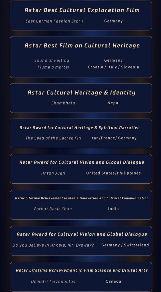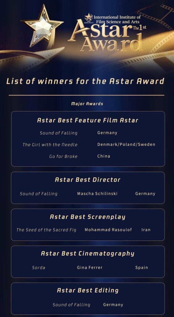 พิธีมอบรางวัล Astar Award ก่อตั้งโดย International Film and Science Academy (IIFSA) มุ่งเน้นแนวทางวิชาการในเรื่อง “การผสมผสานระหว่างวิทยาศาสตร์และศิลปะ” IIFSA ก่อตั้งขึ้นในปี 2024 มี headquarters อยู่ที่นิวยอร์ก สหรัฐอเมริกา เป็นองค์กรวิชาการไม่แสวงหาผลกำไร สมาชิกของ Academy ได้แก่ศาสตราจารย์จากมหาวิทยาลัยที่มีชื่อเสียงหลายแห่ง เช่น New York University, University of California, Los Angeles, University of Southern California, University of Chicago, University of Leicester, Beijing Film Academy ฯลฯ โดยมีวัตถุประสงค์เพื่อส่งเสริมการพัฒนาอย่างบูรณาการของการวิจัยการศึกษาและการปฏิบัติด้านภาพยนตร์