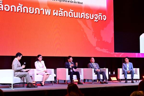 สำหรับวงเสวนา หัวข้อ “ประเทศไทย 2035: อ่านเกมภูมิรัฐศาสตร์โลกในทศวรรษใหม่” ผู้ช่วยศาสตราจารย์ ดร.อาร์ม ตั้งนิรันดร นักวิชาการด้านจีน คณะนิติศาสตร์ จุฬาลงกรณ์มหาวิทยาลัย วิเคราะห์ว่า ความขัดแย้งระหว่างสหรัฐฯ และจีนเป็นการแข่งขันระยะยาวที่หลีกเลี่ยงไม่ได้ ไทยจึงต้องคัดกรองการลงทุนจากจีนให้ได้ทุนคุณภาพ และสร้างห่วงโซ่อุปทานใหม่ที่เชื่อมโยงกับเทคโนโลยีและซอฟต์พาวเวอร์ ทางด้าน ดร.สันติธาร เสถียรไทย ที่ปรึกษาด้าน Future Economy สถาบันวิจัยเพื่อการพัฒนาประเทศไทย (TDRI) ระบุว่าโลกกำลังเข้าสู่ยุคแห่งการเปลี่ยนแปลงใน 3 มิติหลัก ได้แก่ การค้าแบบเครือข่ายหลายเส้นทาง การแบ่งขั้วเศรษฐกิจใหม่ และการขยายตัวของภาคบริการ โดยเฉพาะการท่องเที่ยว ซึ่งเป็นโอกาสสำคัญของไทย ทั้งนี้ ดร.ฐิติมา ชูเชิด ผู้อำนวยการอาวุโส ผู้บริหารฝ่ายวิจัยเศรษฐกิจมหภาค, ศูนย์วิจัยเศรษฐกิจและธุรกิจ ธนาคารไทยพาณิชย์ (SCB EIC)” มองว่าไทยอยู่ใน “ขั้วเทา” ระหว่างมหาอำนาจ แม้มีโอกาสเป็นสะพานเชื่อม แต่ต้องเผชิญความเสี่ยงจากการแข่งขันที่ซับซ้อน พร้อมเตือนให้จับตา 4 ปัจจัยสำคัญ ได้แก่ ทิศทางการลงทุนโลก การเคลื่อนย้ายศูนย์กลางเศรษฐกิจ การลดลงของความร่วมมือระหว่างประเทศ และการลดบทบาทของเงินดอลลาร์ในระบบการเงินโลก ในมุมภาคธุรกิจ นางสาวจรีพร จารุกรสกุล ประธานกรรมการบริหาร และประธานเจ้าหน้าที่บริหารกลุ่ม บริษัท ดับบลิวเอชเอ คอร์ปอเรชั่น จำกัด (มหาชน) มองว่าเทคโนโลยีทำให้วัฏจักรเศรษฐกิจสั้นลง ไทยต้องปรับตัวเชิงรุก ดึงการลงทุนในอุตสาหกรรมอนาคต เช่น อิเล็กทรอนิกส์ เครื่องมือแพทย์ โลจิสติกส์อัจฉริยะ และพลังงานสะอาด