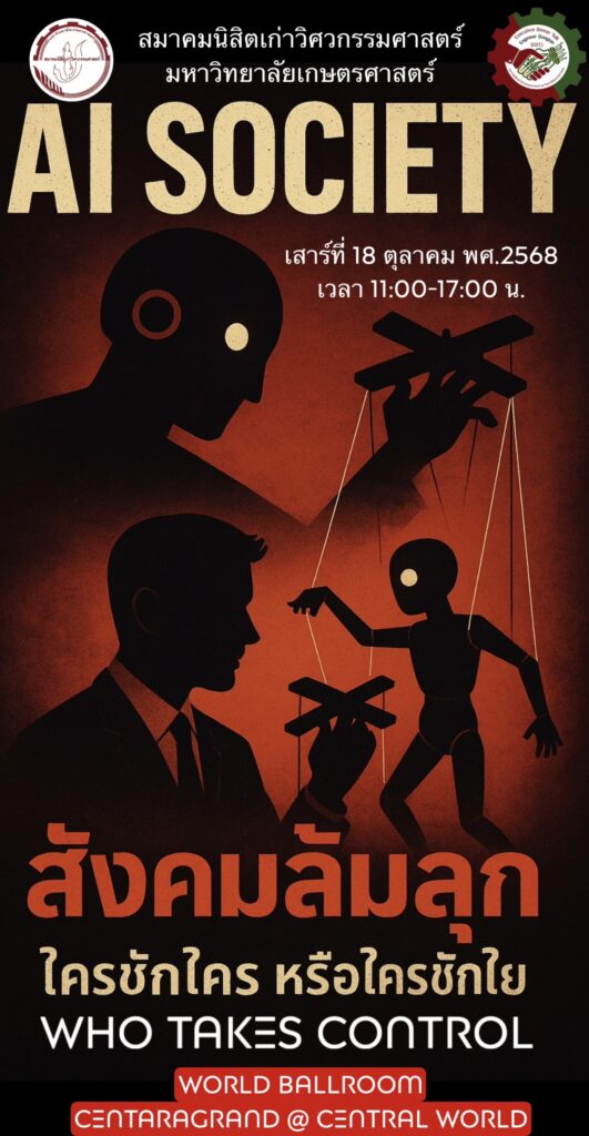 สัมมนา AI Society สังคมล้มลุก จึงไม่ได้เป็นเพียงเวทีวิชาการ แต่เป็นเวทีเปิดใจ เปิดความคิด และเปิดคำถาม เพื่อชวนทุกคนมาร่วมกันมองอนาคตที่กำลังถูกชักใยโดยเทคโนโลยี เราจะไม่เพียงพูดถึง AI ในฐานะเครื่องมือ แต่ในฐานะ “ตัวละครใหม่” ที่อาจกำหนดชะตากรรมของมนุษย์ทั้งสังคม คำถามที่เราต้องร่วมกันค้นหาคือ สังคมจะล้มลงเพราะ AI หรือจะลุกขึ้นใหม่ด้วยพลังของมัน?