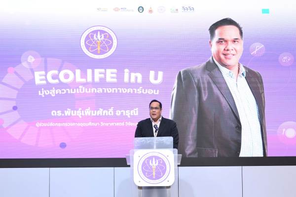ดร.พันธุ์เพิ่มศักดิ์ อารุณี ผู้ช่วยปลัดกระทรวงการอุดมศึกษา วิทยาศาสตร์ วิจัยและนวัตกรรม (อว.) กล่าวว่า “โครงการ “ECOLIFE in U” นับเป็นก้าวสำคัญของกระทรวง อว. ในการพัฒนาสถาบันอุดมศึกษาให้มีคุณภาพอย่างยั่งยืน (Sustainable University) และมุ่งสู่เป้าหมาย “ความเป็นกลางทางคาร์บอน” (Carbon Neutrality) โดยมุ่งเน้นการสร้างการรับรู้และปลูกจิตสำนึกด้านสิ่งแวดล้อมให้กับนิสิต นักศึกษา และบุคลากรในสถาบันอุดมศึกษา โดย “U” หมายถึงทั้งนิสิต นักศึกษา (You) และมหาวิทยาลัยทั่วประเทศ (University) ซึ่งเริ่มดำเนินโครงการตั้งแต่ปี 2567”