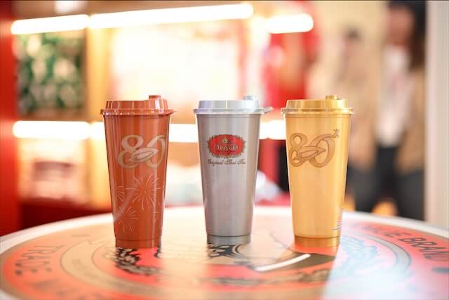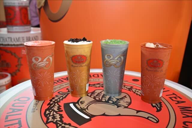 o ทุกเมนูเครื่องดื่ม “ชาตรามือ” ที่จำหน่ายภายในงานนี้ เสิร์ฟในแก้วลิมิเต็ด 3 สี ทอง เงิน และนาค สำหรับฉลองครบรอบ 80 ปี