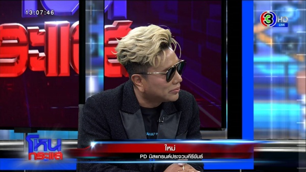 ใหม่ :   สุดท้ายก็อยากฝาก ผมก็เครียดหลายๆ อย่าง มิสแกรนด์ทำเพื่อบิสิเนส ทำเพื่อสังคม เพื่อการต่อยอดของน้อง บอสเราก็ชัดเจนอยู่แล้ว ทุกคนต้องได้ผลประโยชน์จากการประกวดครั้งนี้ สปอนเซอร์จ่ายเงินให้จัดงานเขาอยากได้โรลโมเดลดีๆ เพื่อต่อยอดเขา ผมอยากได้ลูกสาวเก่งเพื่อต่อยอดตัวผมเอง การจัดใช้เงินค่อนข้างสูง