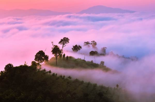 Sea of mist and sunrise at yun lai view point ,pai , mae hong son, Thailand