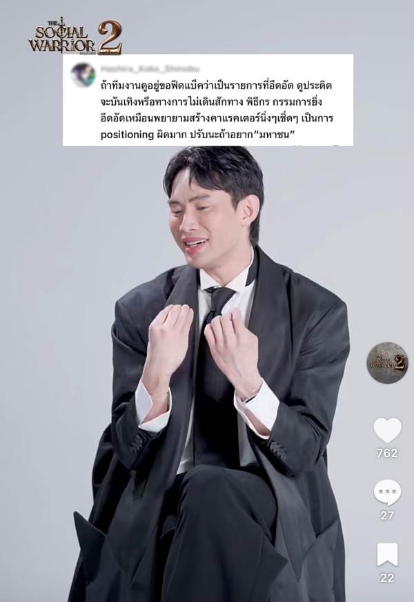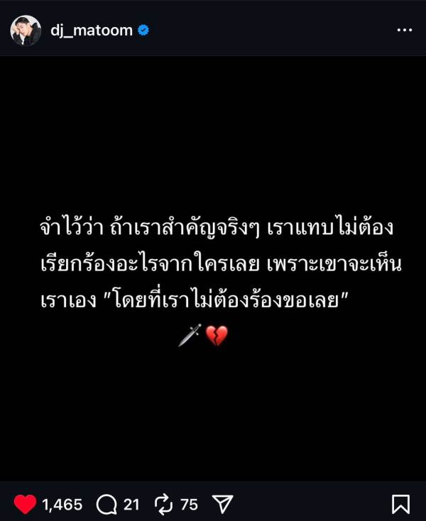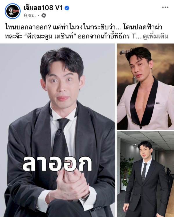 เรื่องมันไม่จบแค่นั้น เพราะหลังจาก เจ๊มอย 108 v1 ยังออกมาโยนหินถามทาง ดีเจมะตูม เตชินท์ พลอยเพชร ถูกปลด หรือลาออกเองจากรายการ The Social Warrior ซีซัน 2 จนแฟนๆ สงสัยหนักว่าเบื้องหลังมีอะไรลึกกว่านั้น?! ล่าสุด ตาดีแอบเห็นโพสต์ในไอจีของ ดีเจมะตูม เตชินท์ ที่เขียนทิ้งปริศนาไว้ว่า “ถ้าเราสำคัญจริง ๆ เราไม่ต้องร้องขออะไรเลย เขาจะเห็นเราเอง”พร้อมอิโมจิ ดาบ+หัวใจแตก ก่อนจะตอกย้ำด้วยสตอรี่ว่า “อย่างน้อยครั้งหนึ่งก็ได้ทำมันเต็มที่แล้ว จากนี้ฝากด้วยนะครับ”