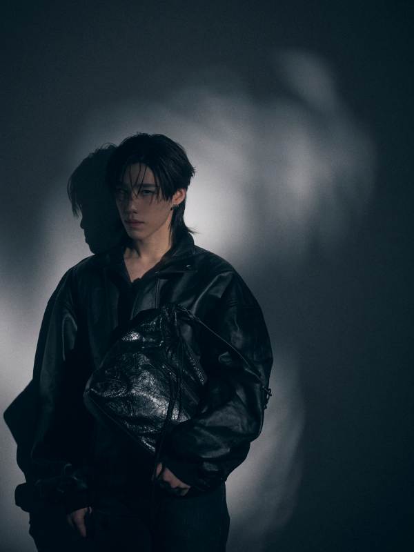 พีพี มาในลุคแจ็กเก็ตบลูซงทำจากหนังสีดำเนื้อเกรนแบบกึ่งเงา และกางเกงขายาวทรงกว้างทำจากผ้าเดนิมสีดำ แมตช์ด้วยกระเป๋ารุ่นใหม่ล่าสุดอย่าง Le City Hobo Bag ในหนังแกะ Arena Storico และรองเท้าสนีกเกอร์สีดำรุ่น Hamptons