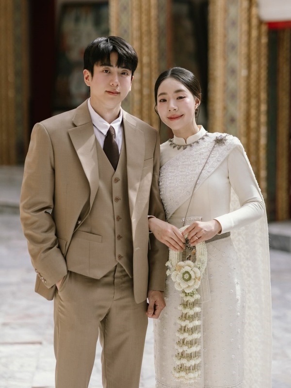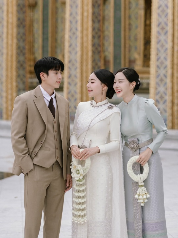 “ลูกน้ำ–เพ็ญพิชชา” พี่สาว “นนกุล–ชานน” เริ่มต้นชีวิตคู่อย่างเป็นทางการ ทำบุญที่วัดราชบพิธฯ พร้อมเจ้าบ่าวและสองครอบครัว ร่วมบรรยากาศอบอุ่นเป็นสิริมงคล