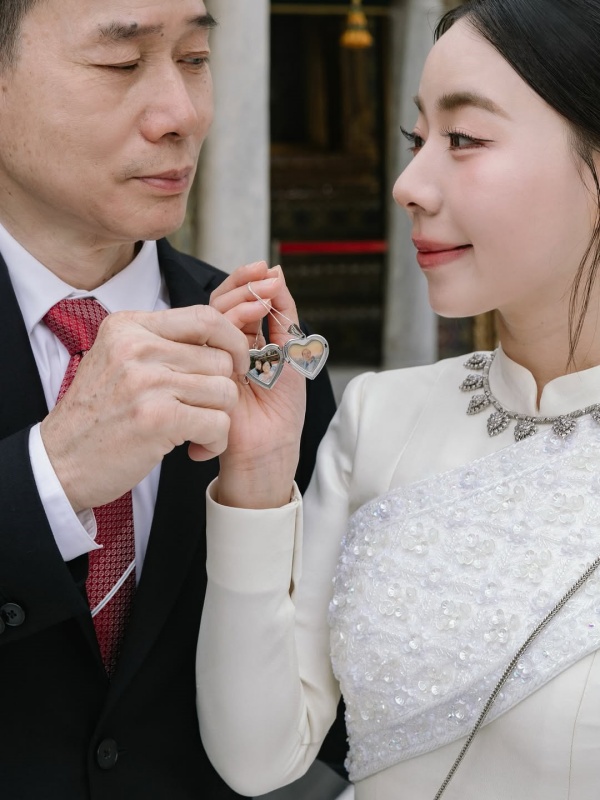“ลูกน้ำ” พี่สาว “นนกุล” เริ่มต้นชีวิตคู่สุดอบอุ่น ทำบุญที่วัดราชบพิธฯ พร้อมสองครอบครัว