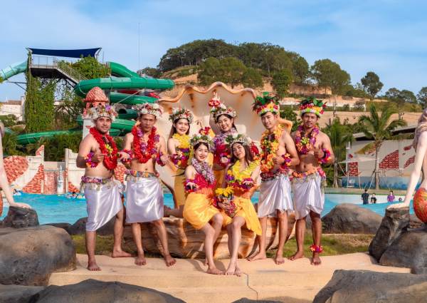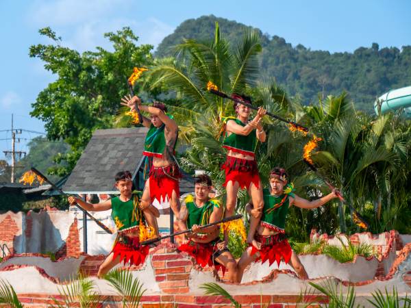 - เพลิดเพลินไปกับการแสดงเต้นลิมโบ และระบำฮาวายพ่นไฟสุดตระการตา ที่ Double Wave Pool