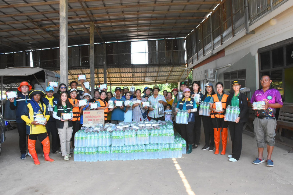 คณะเจ้าหน้าที่ได้มอบถุงยังชีพเพื่อบรรเทาความเดือดร้อนในเบื้องต้นแก่ชาวบ้านจำนวน 66 ครัวเรือน โดยสิ่งของที่นำไปแจกจ่ายประกอบด้วย เมล็ดพันธุ์พืชผักสวนครัวสำหรับปลูกหลังน้ำลด น้ำหมักชีวภาพ พด.6 ซึ่งมีคุณสมบัติในการบำบัดน้ำเน่าเสียที่ท่วมขัง รวมถึงน้ำดื่ม นม และบะหมี่กึ่งสำเร็จรูป เพื่อให้ชาวบ้านสามารถใช้ประทังชีวิตในช่วงที่ยังไม่สามารถกลับเข้าสู่ภาวะปกติได้