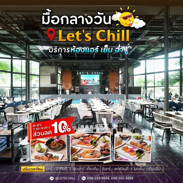 ข่าวดีสำหรับสายกินย่านปากเกร็ดนนทบุรี เพราะตอนนี้มีร้านอาหารสไตล์โมเดิร์น Let’s Chill New Cool ที่เพิ่ง รีโนเวทโฉมใหม่ มีห้องแอร์ และดนตรีสด พร้อมห้องคาราโอเกะ มาไว้บริการ เหมาะกับทุกวัย ตั้งแต่วัยเด็ก ไปจนผู้ใหญ่ จะสายปาร์ตี้ หรือนัดคุยงาน ก็มีห้องหลากหลายไว้ให้พร้อม รวมถึงยังมี ห้อง Kids Club สำหรับคุณพ่อ คุณแม่ที่จะพาลูก ๆ มาสนุกกับเครื่องเล่น พร้อมอิ่มอร่อยไปกับอาหารหลากหลายเมนูที่น้อง ๆ หนู ๆ ทานได้